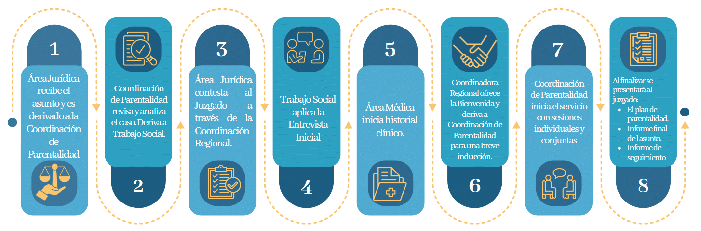 La derivación puede ser directa por el juzgado familiar que atiende los asuntos de la familia.